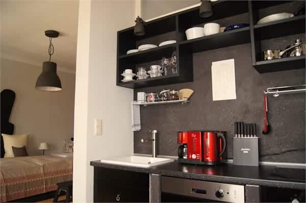 Ihr Zuhause bei Johann im Altstadthaus bietet auf 35 m² alles was man braucht. Von einem kleinen Vorraum mit Garderobe gelangt man in einen großzügigen Wohn-Schlaf-Bereich, an den eine vollkommen ausgestattete Küche angrenzt. Das Badezimmer verfügt über Dusche, WC und Waschbecken, die zu einer perfekten Einheit kombiniert sind. Und falls Sie einmal dem Stadttrubel entkommen möchten, sorgen zahlreiche Bücher unterschiedlichster Genres und ein Flatscreen TV für Unterhaltung.